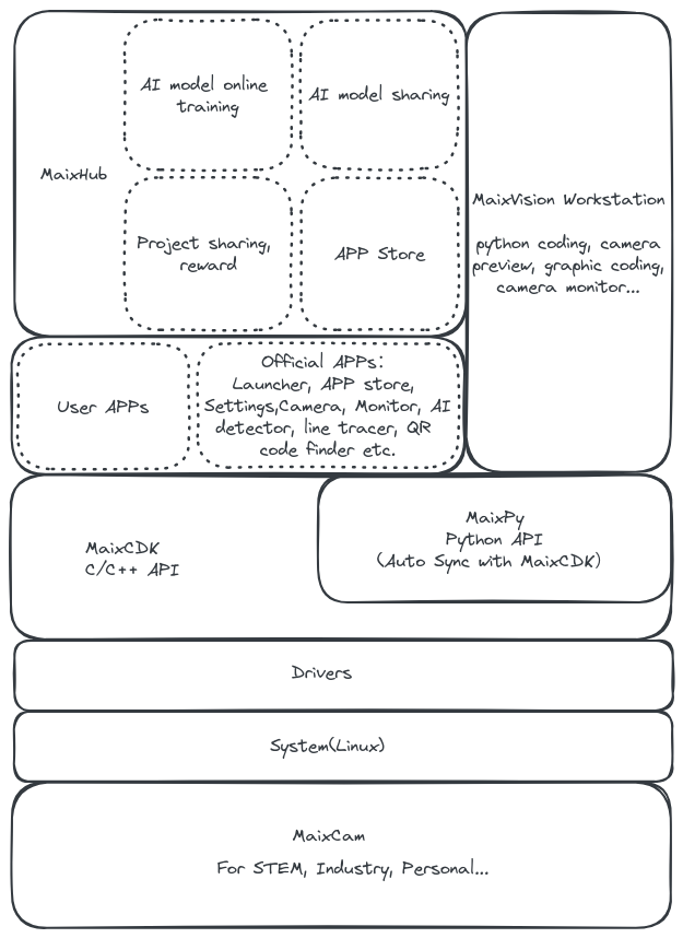 | Software | MaixPy | MaixPy3 | MaixCDK + MaixPy v4 + opencv + numpy + ... |