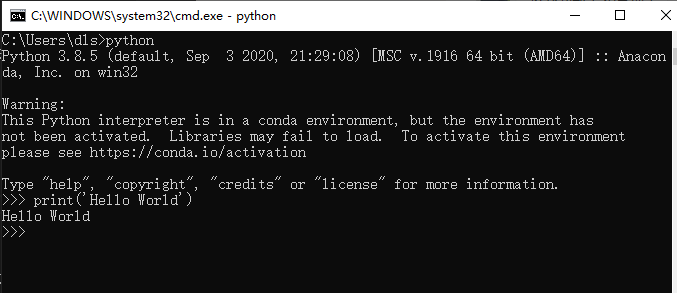 当写下第一行代码的时候,在电脑上的 Python 解释器运行效果是这样的。
